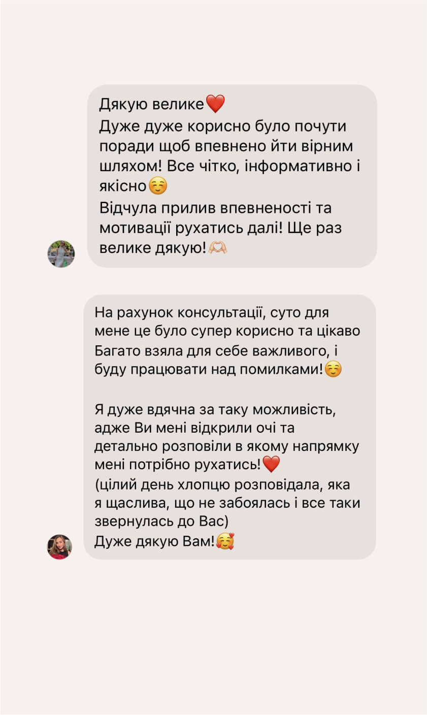 Провела більше 100 консультацій по розвитку особистого бренду. Тому я точно знаю, що потрібно для успішного запуску та розвитку вашого бізнесу